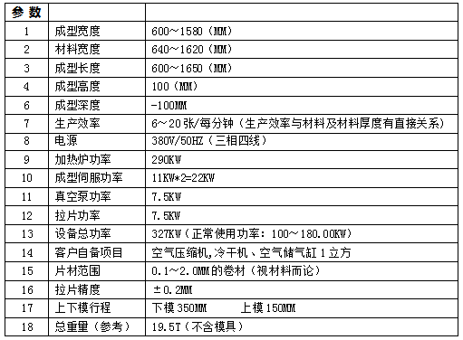 特點:ZS2A-5048L型高效程控塑料氣壓熱成型機(jī),按客戶非標(biāo)定制,運用新型塑料片材成型工藝技術(shù),是集機(jī)、電、氣一體化設(shè)計,采用工控可編程器PLC控制,整個系統(tǒng)HMI(人機(jī)界面)。方形隧道式輻射加熱器,凸凹模皆可成型。拉片、加熱、成型、切割、堆垛、邊料自動收卷一次完成的塑料片材成型設(shè)備。減少人工、操作便捷、提高生產(chǎn)效率、可靠性強(qiáng)、自動化程度高,專用于淋水片熱成型和產(chǎn)品自動分切的流水式生產(chǎn)線。
